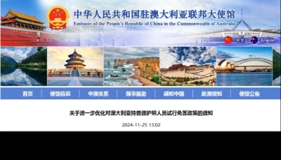 中國對新西蘭、澳大利亞、波蘭3國試行免簽政策