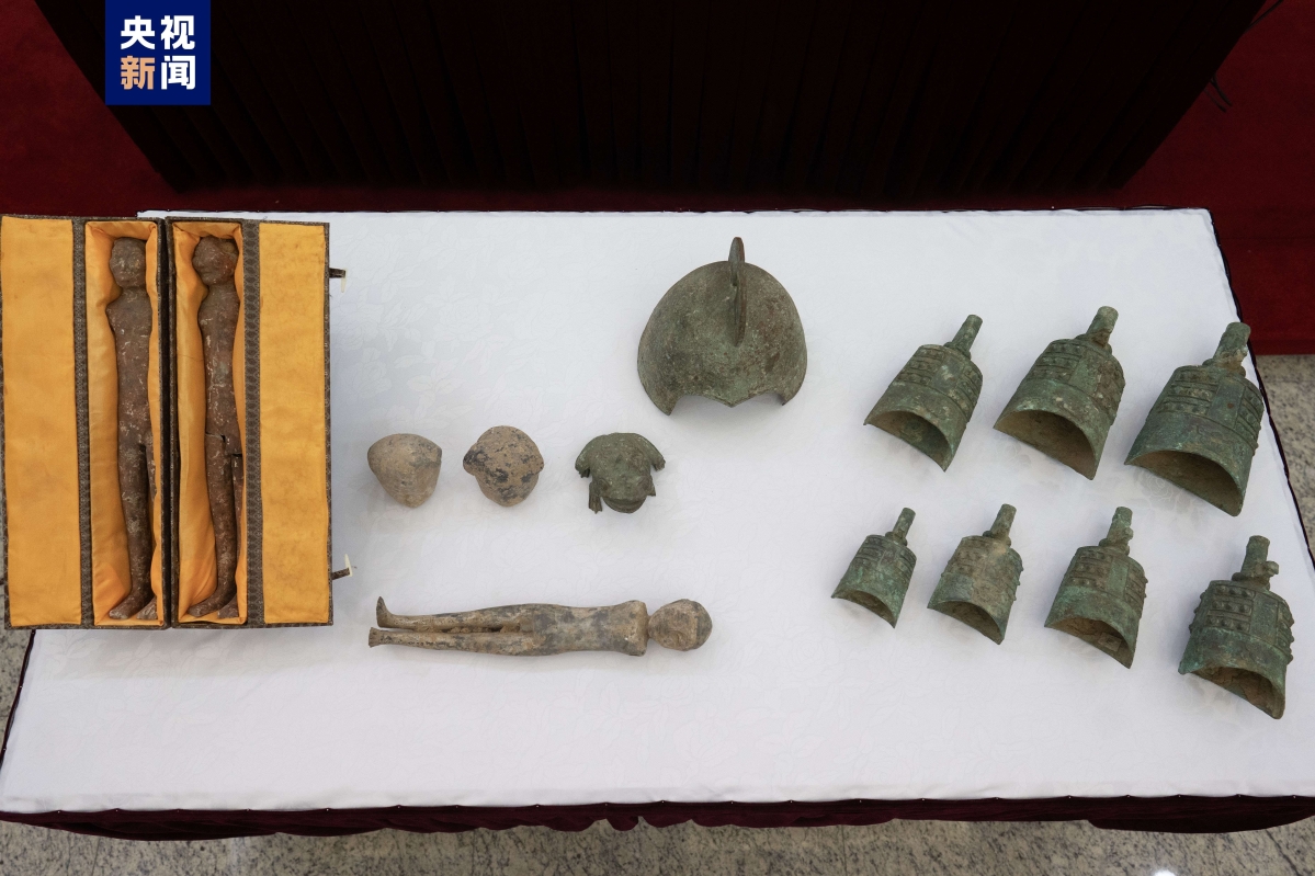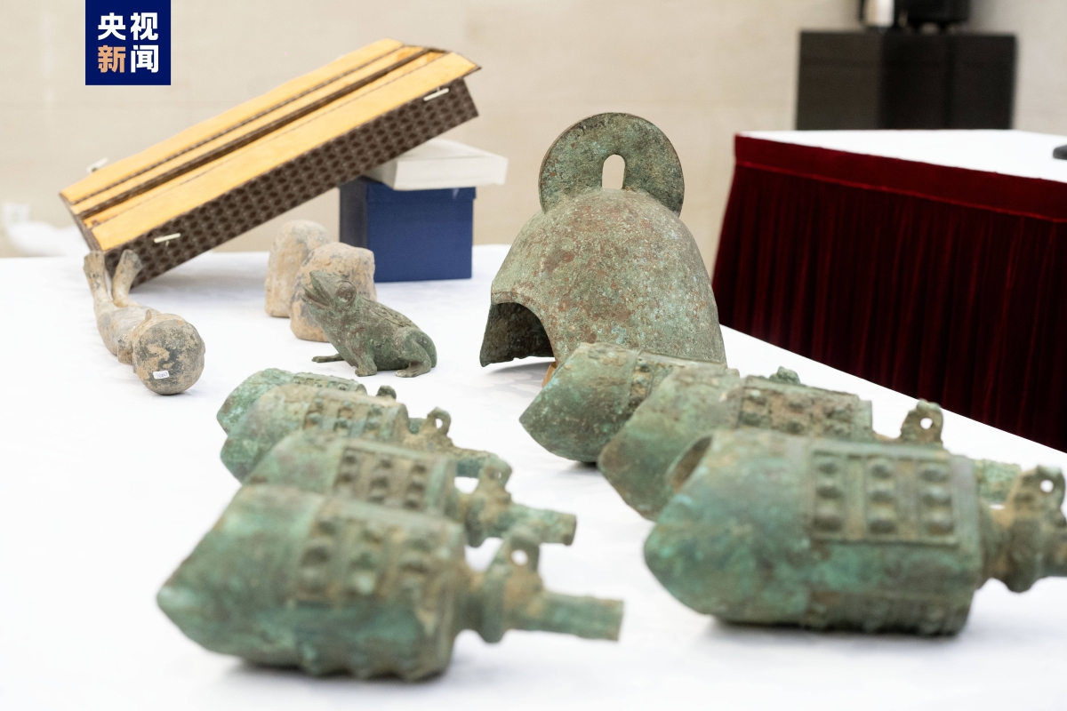 據央视新闻報道,此次返還的14件文物藝術品為中國非法出境文物。初步判斷: 其中7件青銅甬鐘的時代應為春秋晚期; 其餘陶俑3件、俑頭2件、銅蛙1件、銅盔1件,時代在漢代至南北朝之間。