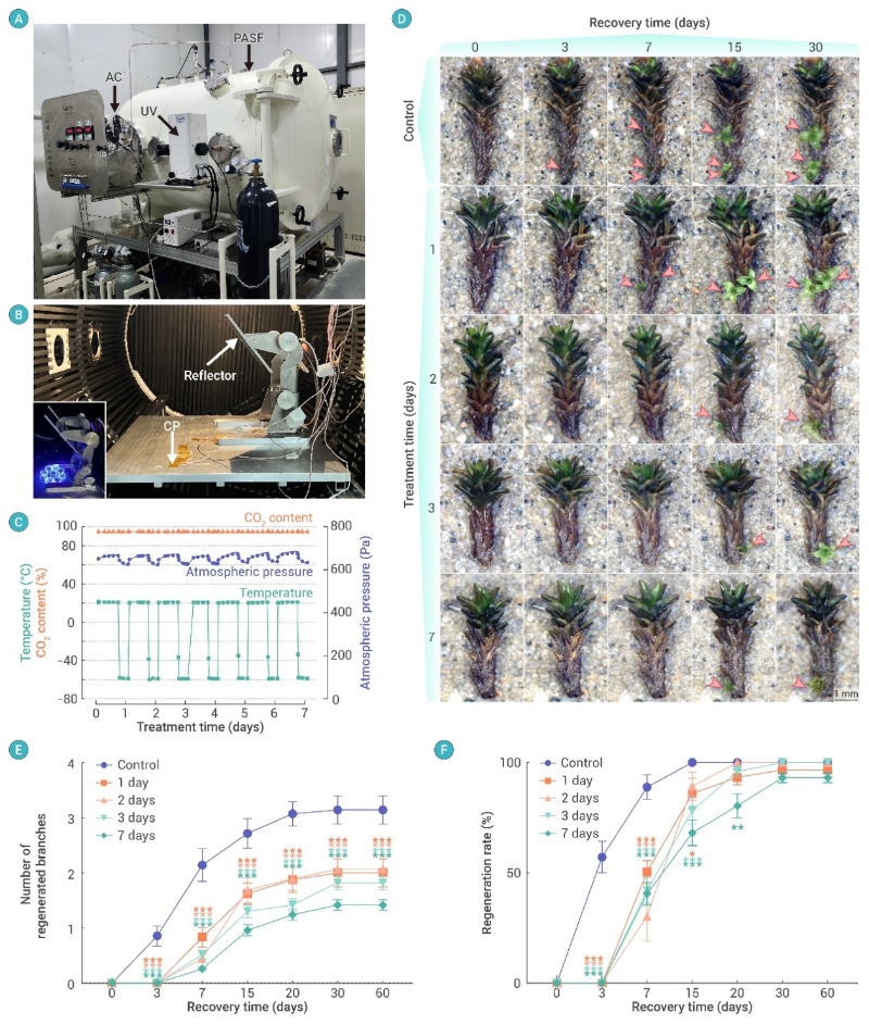 香港新聞網7月4日電 據中國科學院新疆生態與地理研究所消息,該所張道遠研究員和張元明研究員團隊通過研究發現一種生長在沙漠裡的苔蘚——齒肋赤蘚能耐受自身98%以上的細胞脫水、零下196攝氏度的超低溫速凍,以及5000 Gy以上伽馬輻照不會死亡。 科研人員還發現在火星模擬條件下,齒肋赤蘚仍能存活并再生出新的植株。這一研究刷新了極端生命體對環境的“耐受”新紀錄,為人類探索外太空、打造宜居星球提供了靈感,并有助於人類在火星上建立全新的生態系統。 這一研究成果近日發表於綜合性英文學術期刊《The Innovation》(《創新》)。