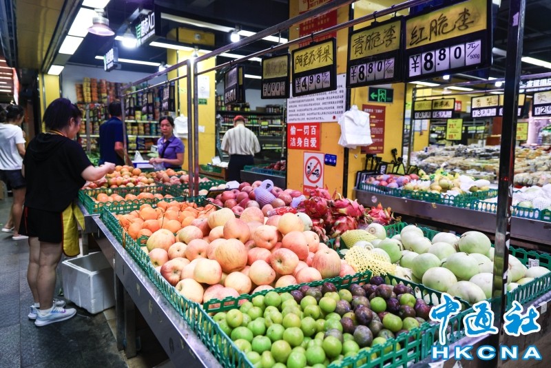 圖為深圳市民於超市內購物。(香港中通社記者 許其皓攝) 其中,城市同比上漲0.2%,農村上漲0.4%;食品價格下降2.1%,非食品價格上漲0.8%;消費品價格下降0.1%,服務價格上漲0.7%。1至6月平均,全國居民消費價格比上年同期上漲0.1%。 其中,城市環比下降0.2%,農村下降0.2%;食品價格下降0.6%,非食品價格下降0.2%;消費品價格下降0.4%,服務價格持平。 國家統計局城市司首席統計師董莉娟解讀,CPI環比季節性下降,同比繼續上漲。6月份,消費市場供應總體充足,全國CPI環比季節性下降,同比繼續上漲。扣除食品和能源價格的核心CPI同比上漲0.6%,漲幅與上月相同,繼續保持溫和上漲。 國家統計局新聞發言人、總經濟師、國民經濟綜合統計司司長劉愛華6月中旬表示,從目前掌握的食品、工業消費品、服務等價格走勢看,中國CPI仍將繼續溫和回升。(完) 【編輯:丘志彬】