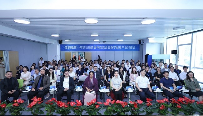 深圳(福田)— 阿聯酋經貿合作交流會暨數字創意產業對接會成功舉辦香港新聞網7月12日電 由阿拉伯聯合酋長國駐廣州總領事館、深圳國際商會、深圳市數字創意與多媒體行業協會共同主辦的“深圳(福田)— 阿聯酋經貿合作交流會暨數字創意產業對接會”於昨(11日)在深圳福田大中華國際金融大廈點線世界會議廳隆重舉行。 本次活動的舉辦在中國和阿聯酋建交40周年之際,旨在為落實數字創意產業高質量發展,深化國際交流與合作,共享數字經濟新機遇。活動得到了深圳市文化廣電旅游體育局、深圳市福田區人民政府的大力支持。活動當日匯聚了來自雙方政府職能部門、數字創意、金融等領域130多位精英與企業代表,共同搭建了一個專業的交流平台,以推動雙方經貿合作實現新的突破。
