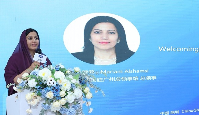 阿拉伯聯合酋長國駐廣州總領事館總領事瑪爾妍·尚穆希、阿拉伯聯合酋長國駐廣州總領事館經濟事務專員穆達、中國國際貿易促進委員會深圳市委員會二級巡視員楊浩勃、深圳市福田區人民政府副區長、黨組成員餘楓、深圳市數字創意與多媒體行業協會會長李萌迪出席現場活動并講話。