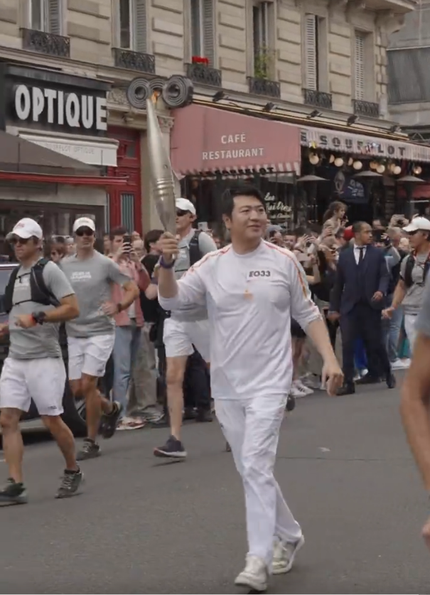 當地時間7月14日,中國鋼琴家郎朗參與奧運火炬的傳遞。視頻截圖 據新華社報道,在法國國慶日傳統的閱兵式結束後,奧運火炬傳遞於當天午後在香榭麗舍大街正式開始。首位火炬手是法國足壇傳奇球星、現任法國國奧隊主教練亨利。 按照計劃,奧運火炬先後經過大皇宮、小皇宮、國民議會、先賢祠、索邦大學大禮堂、雨果故居、巴士底廣場、旺多姆廣場、盧浮宮、蓬皮杜藝術中心等巴黎景點,最後抵達巴黎市政廳,并在此開啟當天的慶典活動。 郎朗是當天第一位接過火炬的中國火炬手,他的起跑地點是巴黎地標性建築先賢祠的前面。 “今天這個地方特別有意義,先賢祠前面,索邦大學的大禮堂也在旁邊,這是與奧運有直接聯繫的一個地方,我感到非常榮幸。”郎朗在接受新華社記者專訪時表示。此前他曾先後擔任過北京2008、倫敦2012以及裡約2016三屆奧運會的火炬手,巴黎是他的第四次奧運火炬手之旅。索邦大學大禮堂則正是顧拜旦在一百多年前發表演講、首次公開提出恢複奧運會的地方,也是國際奧委會成立的地方。 “每一次都感覺不一樣,2008年的時候第一次跑,那時完全沒有經驗,以為讓我們像運動員一樣跑,我還成天練。今天跑下來感覺特別好。”郎朗說,“真的是每一次擔任火炬手都感覺特別榮幸,尤其是現在這個時候,我們所處的世界更加需要團結,這也是奧林匹克的精神。” 陳忠偉與王一博的傳遞均在當天最後一個路段——盧浮宮至市政廳。