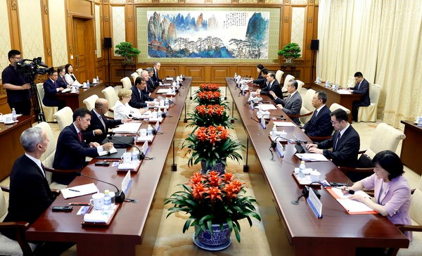 香港新聞網7月23日電 據新華社報道,中共中央政治局委員、中國外交部長王毅,中共中央政治局委員、中國國務院副總理何立峰22日在北京分別集體會見美中貿易全國委員會董事會主席芮思博率領的代表團。