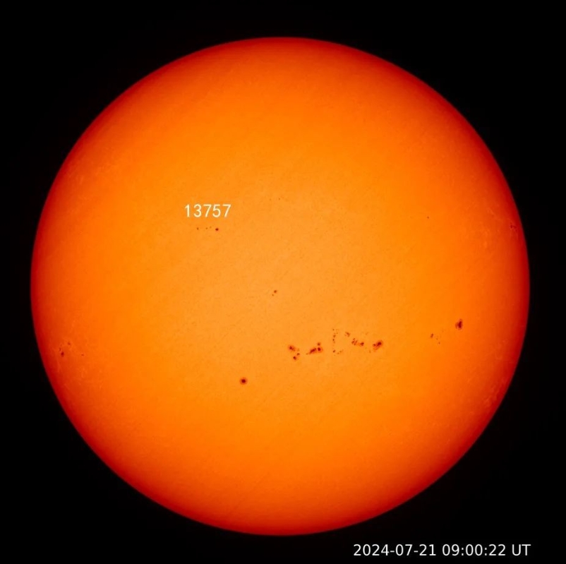 香港新聞網7月24日電 據中國國家空間天氣監測預警中心公眾號消息,北京時間7月22日00時40分左右,太陽活動區13757爆發了一次較為明顯的日冕物質拋射(CME)過程,活動爆發位置靠近太陽可見日面中心區域,相對地球方向較正。受其影響,預計在7月24日至25日地球可能出現地磁暴過程。 製造此次CME的太陽活動區13757面積很小,小到稍不注意就會漏掉,而且在正式噴發前,也沒有明顯的大耀斑爆發,可以說是一個“特立獨行”的活動區。但就是這樣一個并不起眼的小黑子,卻噴發出了質量相當可觀的日冕物質。