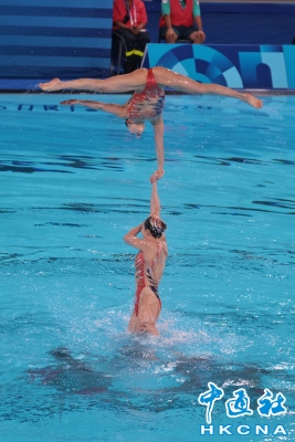 圖為中國隊隊員展示金牌。(香港中通社記者 謝光磊 攝) 香港中通社圖片 本屆奧運會花樣游泳項目由集體技術自選、集體自由自選和集體技巧自選三項比賽組成。當天進行的集體技巧自選比賽中,由馮雨、常昊、王賜月、張雅怡、王柳懿、王芊懿、肖雁寧、向玢璇組成的中國花游隊,以283.6934分名列第一。在此前進行的集體技術自選、集體自由自選比賽中,中國花游隊分別獲得313.5538和398.8917的高分,兩項成績也均名列全場第一。 中國花游三項總分996.1389分,領先第二名美國隊81.7968分,斷層領先奪得了這塊歷史首枚奧運金牌。(完) 【編輯:丘志彬】