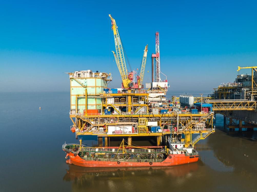 趙東油田平台鑽井作業現場(資料圖)。(受訪者供圖) 郭海濤表示,此次側鑽井下尾管比中國國內同類型用時節省30%,并大幅節約預算資金。該鑽井紀錄的打破,為中國國內同類型側鑽井提供了借鑒,也為中國國內海上油田開發提供了更多國產工具和技術儲備。(完) 【編輯:丘志彬】