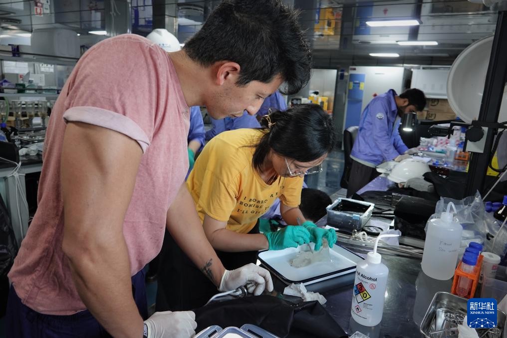 8月19日,哥倫比亞科學家海梅·安德烈斯(左)完成下潛後,與中國科學家在船上實驗室處理下潛採集到的深海生物樣品。新華社記者 王聿昊 攝 2024西太平洋國際航次科考由自然資源部中國大洋事務局組織,國家深海基地管理中心實施。中外科學家計劃在西太平洋海域藉助“蛟龍號”進行18次下潛作業,圍繞海山這一深海典型生態系統和環境開展調查。(完) 【編輯:丘志彬】