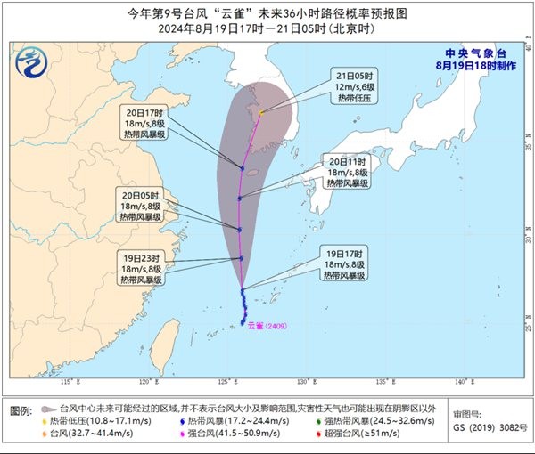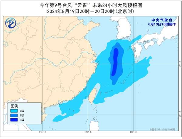 大風預報:8月19日20時至20日20時,黃海東南部、東海及釣魚島附近海域、台灣以東洋面、台灣海峽、南海東北部以及上海沿海、杭州灣、浙江沿海、福建沿海將有6-7級大風,“雲雀”中心經過的附近海域的風力有8級,陣風可達9-10級。(完) 【編輯:丘志彬】