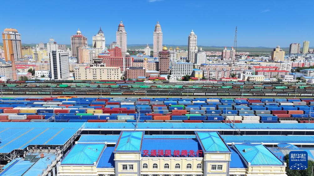 8月20日,出境的中歐班列在中國鐵路哈爾濱局集團有限公司內蒙古滿洲里站內整裝待發(無人機照片)。新華社發(黃旭攝) 據新華社報道,中歐班列“東通道”由滿洲里、綏芬河、同江鐵路口岸組成,通行線路已達27條,可通達波蘭、德國、荷蘭等14個國家,聯通中國長沙、鄭州、成都、蘇州等60餘個城市。運輸貨物涵蓋電器產品、日用百貨、農副產品等12大品類。