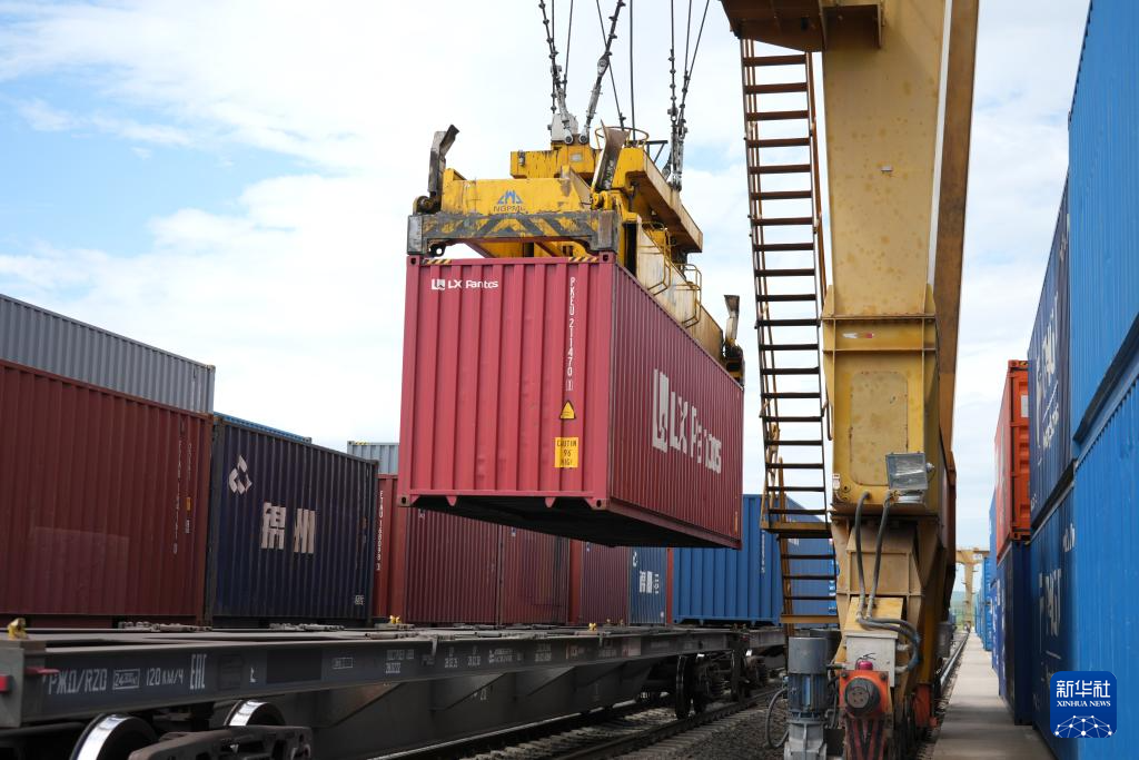 8月6日,中國鐵路哈爾濱局集團有限公司內蒙古滿洲里站貨運車間在對回程中歐班列進行卸車作業。新華社發(黃旭攝) 數據顯示,2013年至2023年,中歐班列“東通道”年通行量由45列增加到5000列,增幅達110倍,實現連年增長。開行萬列所需時間由開行之初的90餘個月縮短為現在的21個月。