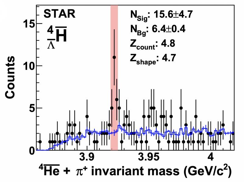 什麼是正物質和反物質呢? 當前的物理學知識認為物質和反物質的性質是對稱的,在宇宙誕生之初應該存在等量的正物質和反物質。幸運的是,某種神秘的物理機制導致了早期宇宙中正反物質數量極小的不對稱,在絕大部分正反物質湮滅後,約百億分之一的正物質得以存活下來,構成了今天的物質世界,并成為人類文明誕生和存在的基礎。 是什麼原因造成了宇宙中正反物質數量的差別?要回答這個懸而未決的問題,一個重要的思路是在實驗室中製造新的反物質并研究它們的性質。 反物質非常罕見,而由若干反重子進一步組合形成的反物質原子核和反物質超核(即包含Lambda等超子的原子核),則更加難以產生。自1928年狄拉克方程的“負能量解”預示反物質的存在以來,近一個世紀,科學家僅發現了6種反物質(超)核。 此次發現的反超氫-4是在相對論重離子碰撞實驗中產生的。位於美國布魯克海文國家實驗室的相對論重離子對撞機(RHIC),能將重離子束加速至接近光速并使其對撞,在實驗室中模擬宇宙早期大爆炸的狀態。這種對撞能產生幾萬億度的高溫火球,包含幾乎等量的正物質與反物質。火球迅速膨脹、冷卻,使得一部分反物質有機會逃離與正物質湮滅的命運,被環繞對撞點的STAR實驗探測器觀測到。