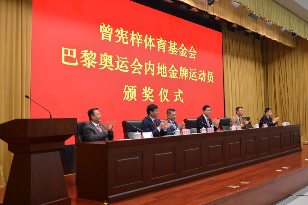曾憲梓體育基金會向巴黎奧運會內地金牌運動員頒獎分享到: