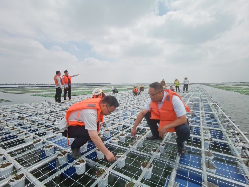 6月6日,項目工作人員在觀察水稻長勢。(新華社) “這是國內首個在大面積沉陷區水面開展的水稻種植項目。”安徽理工大學地球與環境學院教授崔紅標說,他在團隊主要負責水稻種植營養機制的研發。 中國煤炭工業協會副會長解宏緒表示,這一項目填補了中國採煤沉陷區綠色治理的空白。 同有的國家一樣,多年的煤炭開採讓中國一些地方形成不少沉陷區。據國家發展改革委相關科研數據和專家測算,中國採煤沉陷區面積超過2萬平方公里。安徽所在的中國中部,採煤沉陷區面積約佔全國存量的70%。 解宏緒說,一些採煤地表沉陷造成地面建築物、道路和生態環境被破壞,特別是一些農田被水淹沒,制約了礦區經濟和社會可持續發展。 淮河能源控股集團所屬的淮南煤田是中國東南部地區資源量最大的一塊整裝煤田。“試點的成功之處在於,形成了非傳統耕地資源,有助於破解煤炭開採和耕地保護的矛盾。”該集團董事長王世森說。