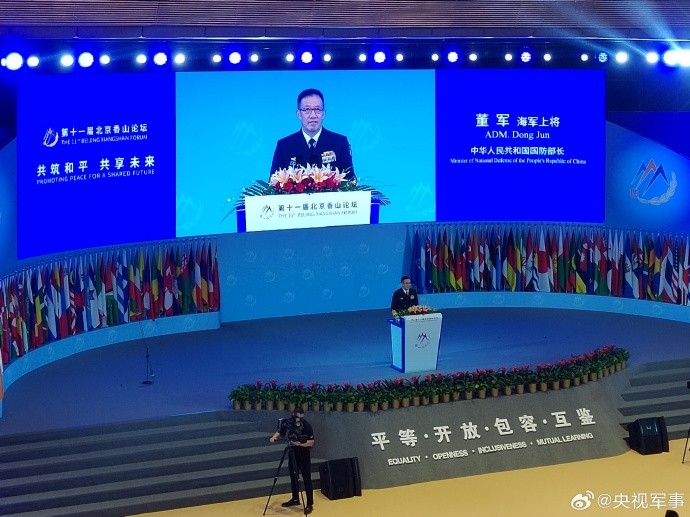 香港新聞網9月13日電 今天(9月13日)上午,第十一屆北京香山論壇在北京國際會議中心開幕。中國國防部長董軍出席開幕式並發言。第十一屆北京香山論壇的主題是“共築和平 共享未來”,共有100多個國家和國際組織官方代表團的1800多名嘉賓參會。