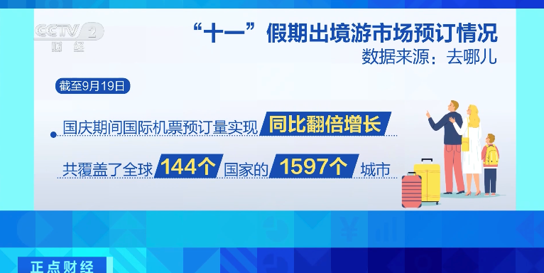 央視財經報道截圖 記者了解到,隨著“十一”假期到來,國內和出境長線旅遊市場都迎來了迅猛增長。旅遊預訂平台數據顯示,截至9月19日,國慶期間的國際機票預訂量已經實現了同比翻倍增長,共覆蓋了全球144個國家的1597個城市,其中,三線及以下城市居民的預訂量同比增長了2.5倍。此外,多樣的文化活動如藝術展覽、音樂會等,吸引著眾多中國遊客。在民宿預訂平台上,具有“葡萄園”“城堡”“農場”等特色的住宿備受歡迎。 某民宿平台中國增長負責人賀昌華介紹,相比“五一”假期,“十一”黃金周的出境遊住宿搜索熱度增長近4倍。歐洲目的地多點開花,意大利一舉成為“十一”黃金周熱搜目的地國家的第二名。同時體育和旅遊相結合的旅行方式愈發盛行,在巴黎奧運會之後,馬拉松成為全球熱潮,悉尼、墨爾本、吉隆坡等在“十一”前後舉辦馬拉松賽事的城市都登上了熱搜榜。(完) 【編輯:丘志彬】