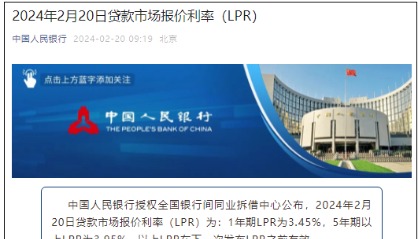 中國央行:1年期和5年期LPR均維持不變