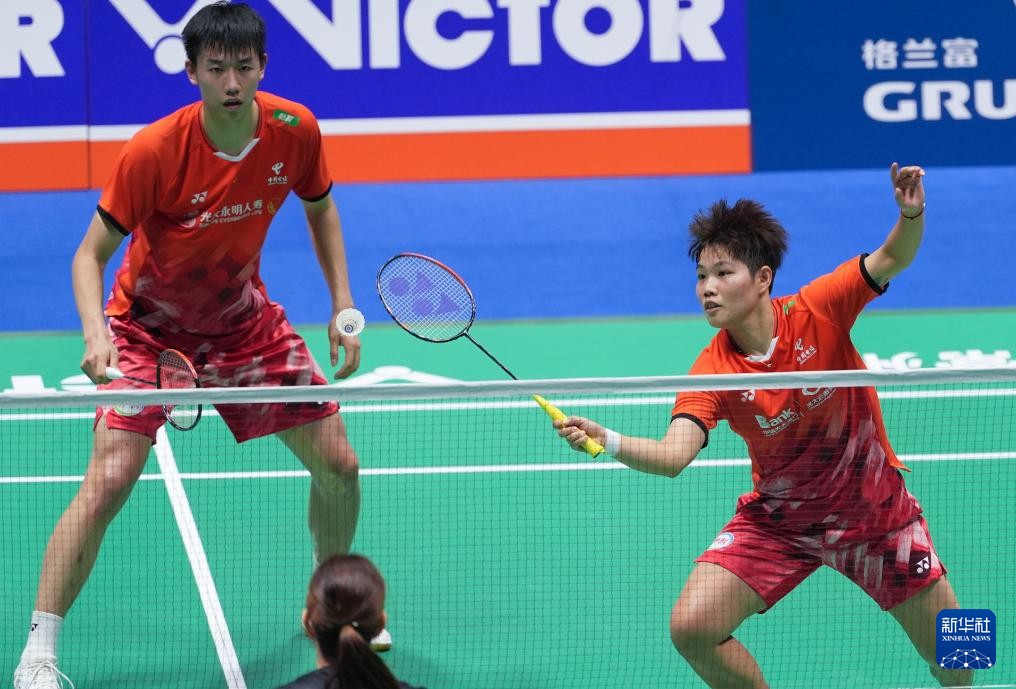 9月22日,中國組合馮彥哲/黃東萍(右)在比賽中。新華社記者 楊磊 攝 馮彥哲/黃東萍在混雙決賽的對手是馬來西亞組合吳塤閥/賴潔敏。首局馮彥哲/黃東萍顯得有點慢熱,在8:8後陷入被動,以16:21落敗。第二局他們又以0:5落後開局,不過兩人很快調整過來,最終以21:14、21:17逆轉奪冠。