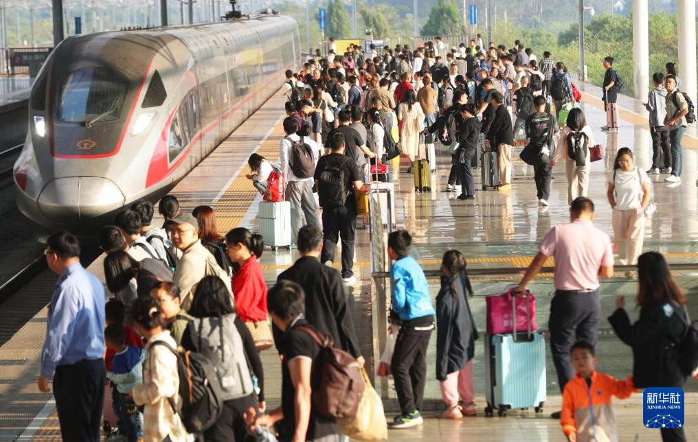10月6日,旅客在湖南省衡陽東站站台排隊乘車。新華社圖片 7日為中國內地國慶黃金周假期最後一天。國鐵集團數據顯示,10月6日,全國鐵路發送旅客1852.4萬人次。中國鐵路上海局集團有限公司表示,長三角鐵路7日迎來返程客流高峰,預計發送旅客357萬人次,較去年同期增加16萬6千人次,增幅達到4.9%。 另據國鐵集團客運部負責人介紹,今年國慶黃金周旅遊流、探親流、學生流交織叠加,鐵路客流預計將保持高位運行,呈現“頭尾長途多、中間中短途多”的特點,部分時段和區段客流高度集中。全國鐵路實行高峰運行圖,統籌高鐵和普速運力資源,日均開行旅客列車12000餘列。 早前,中國各地鐵路部門已加強國慶黃金周旅客運輸組織,強化路地聯動和安全保障。例如,國鐵武漢局集團公司武漢、漢口等各大車站在進站通道、檢票口、候車室等客流集中區域,安排突擊隊和志願者為旅客提供問詢引導、幫扶助行等服務;國鐵濟南局集團公司與國網山東濱州供電公司密切協作,對管內德大鐵路沿線供電設施開展安全巡查,對鐵路供用電設備進行紅外測溫,確保出行用電安全;國鐵西安局集團公司與西安市公交集團等市政交通部門建立聯動機制,延長地鐵運營時間、加開夜間公交、增調出租車,服務旅客出行“最後一公里”。 【編輯:馬華】