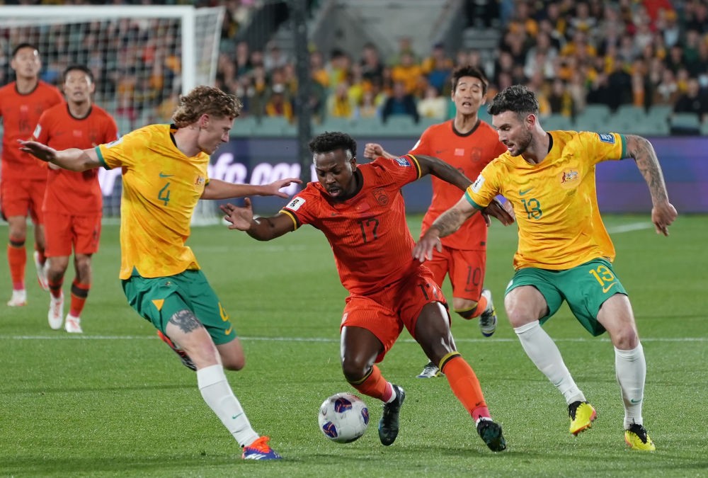 10月10日,中國隊球員費南多(前中)在比賽中拼搶。新華社發(謝思達 攝) 18強賽開賽以來,中國男足接連失利,首輪客場以0:7慘敗於日本隊;次輪主場先入一球後被逆轉,以1:2不敵沙特阿拉伯隊,世界排名降至第91位。澳大利亞男足亦發揮不佳,18強賽前兩輪先負巴林、後平印尼,小組排名倒數第二,也使得原主帥阿諾德(Arnold)在約3周前辭職。 10日,中國男足多名關鍵球員遭遇傷病,缺席比賽。比賽第20分鐘,張玉寧中路頭球擺渡,謝文能插上後推射破門,中國隊先得1分。上半場補時階段第47分鐘,澳大利亞隊利用定位球機會,由米勒頭球破門,將比分扳平。 下半場澳大利亞隊攻勢不減,第53分鐘古德溫世界波進球,幫助球隊反超比分。比賽補時階段第92分鐘,替補登場的韋盧皮萊攻入一球,最終澳大利亞隊以3:1獲勝。 本輪過後,遭遇3連敗的中國隊積0分繼續小組墊底。10月15日,中國隊將在青島坐鎮主場迎戰第四輪的對手印度尼西亞隊。(完) 【編輯:丘志彬】