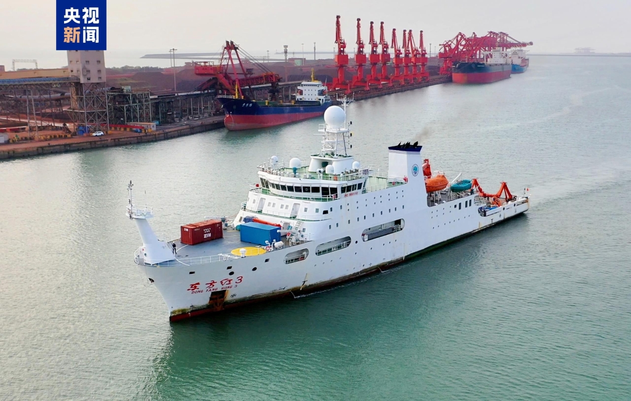中國“東方紅3”科考船完成西北太平洋綜合科考任務凱旋。(圖源:央視新聞網) “東方紅3”8月28日從山東青島港出境,歷時40餘天,先後執行黑潮延伸體浮潛標觀測系統更新維護及斷面觀測,大洋中尺度渦旋組網觀測以及採集深海水樣、泥樣及海洋生物樣本等海洋科考任務。科考過程中,科考隊員還獲得了數萬個海水樣品和沉積物樣品,為後續的研究提供了很好的科研素材。 “東方紅3”船是中國自主創新研發的新一代深海大洋綜合科學考察實習船。中國海洋大學2019年5月發布消息,該校即將交付使用的“東方紅3”船通過挪威DNV-GL船級社權威認證,獲得該社簽發的船舶水下輻射噪聲最高等級——靜音科考級(SILENT-R)認證證書,成為全球最大靜音科考船。 據中國海洋大學船舶中心官網,截止到2023年底,“東方紅3”船航跡遍布渤海、黃海、東海、南海和西北太平洋海域,安全航行近20萬海里。(完) 【編輯:丘志彬】
