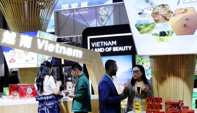 這是2023年11月6日在國家會展中心(上海)拍攝的第六屆進博會國家展越南展台。新華社圖片 何亞東在例行新聞發布會上說,中國是越南第一大貿易夥伴,越南是中國在東盟的第一大貿易夥伴,中越雙邊貿易額連續三年突破2000億美元。今年的1至9月份達到了1903.8億美元,同比增長17.6%。1到8月,中國企業對越南直接投資19.7億美元,保持了較快的增長。 下一步,商務部將積極研究試點建設跨境經濟合作區,拓展信息技術、新能源、數字經濟等新興領域合作。支持雙方企業充分利用進博會、廣交會、中國東盟博覽會等平台,擴大優質的農水產品和工業製成品貿易往來。 何亞東表示,支持雙方加強園區及地方合作,共促產業融合發展,深化供需互嵌,構建穩定暢通的跨境產業鏈、供應鏈。支持雙方企業用足用好RCEP、中國東盟自貿區3.0版等多雙邊經貿合作協議和政策紅利,為地區的發展與繁榮做出更大貢獻。 據報道,中國是越南最大的貿易夥伴,也是越南製造業的重要進口來源。中國是僅次於美國的越南第二大出口市場。兩國之間的貿易額從2008年的208億美元增加到2023年的近1720億美元。(完) 【編輯:林曉惠】