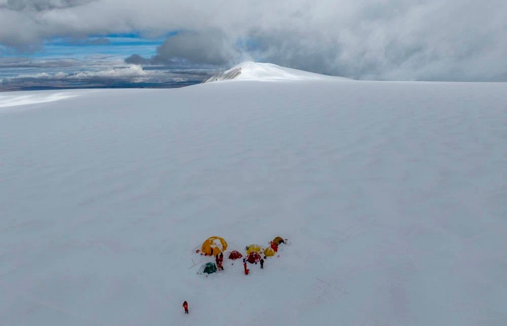 科考團隊在普若崗日冰原頂部海拔6100米的冰穹C作業點營地。新華社記者 姜帆 攝 普若崗日冰原是全球最大中低緯度冰原。通過測厚、取芯,可以更好審視普若崗日冰原正在發生的變化和所記錄的環境變化,從而更全面地了解全球氣候變暖對冰川的影響。