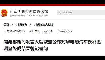 香港新聞網10月31日電 10月31日,中國貿促會召開10月例行新聞發佈會,中國貿促會新聞發言人孫曉針對日前歐委會發佈對華電動汽車反補貼調查終裁結果作出了回應。