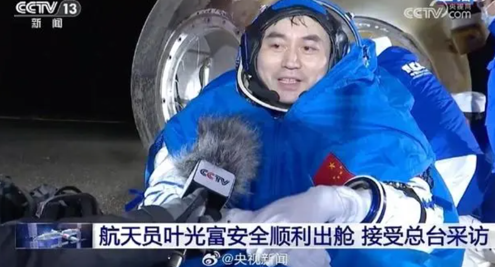 航天員葉光富 圖:央視新聞 當天1時24分,神舟十八號載人飛船返回艙在東風著陸場成功著陸,現場醫監醫保人員確認航天員葉光富、李聰、李廣蘇身體狀態良好,神舟十八號載人飛行任務取得圓滿成功。 返回地球後第一頓飯,吃啥?據中國央視報道,3名航天員都點了雞蛋羹,此外,工作人員還準備了牛肉麵、醬牛肉、蘿蔔燉羊肉、土豆絲、西藍花、榨菜、小餅、小饅頭、小米粥、小西紅柿、哈密瓜、葡萄……航天員回地球的第一頓飯,豐盛!(完) 【編輯:葉永成】