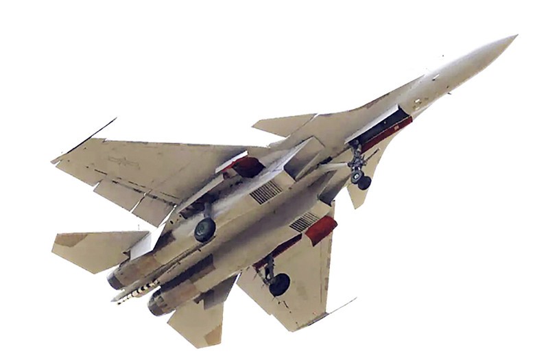 中國海軍重型艦載戰鬥機殲-15T。圖自中國軍號 除搭載了更先進的雷達,殲-15T還有哪些變化?中國軍事專家張軍社分析稱,其主要變化有三個方面:第一,殲-15T的雷達探測距離更遠,從而可以搭載作戰距離更遠的空對空導彈。第二,為了滿足電磁彈射起飛時對前起落架的特殊要求,該機型的前起落架需要進行加固加強,從而提高起飛重量。第三,電磁彈射時比滑躍起飛速度更快,如此大的加速對機身強度要求很高,因此機身也需要采取加強處理。 其實,從過往報道看,中國海軍重型艦載戰鬥機殲-15T首次亮相的時間還要更早——在今年10月31日,中國海軍遼寧艦、山東艦航母編隊史無前例的聯合演練現場畫面刷屏。從央視報道配發的照片中,其實就可以發現殲-15T的身影。對此,中國軍事專家張學峰分析認為,鑒於殲-15最初是為在滑躍式航母甲板上起降而設計的,其應該具有優秀的短距起降能力;那麼,殲-15T應該具備“彈滑一體”的雙重能力。