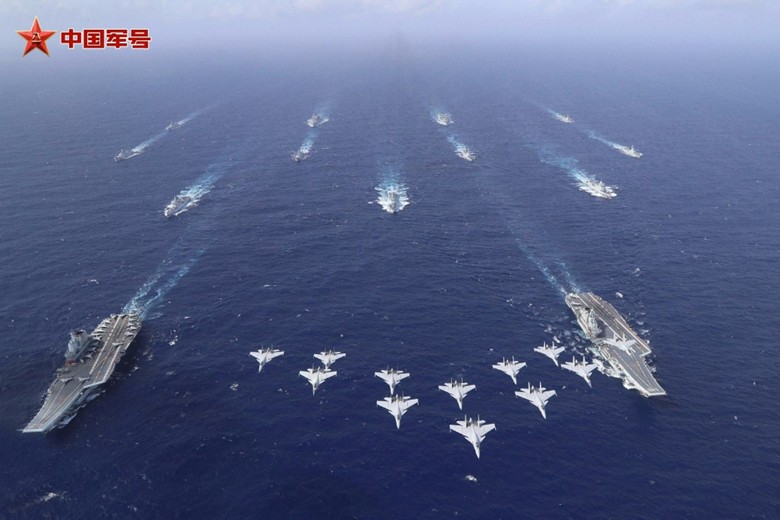 2024年10月31日,中國海軍遼寧艦、山東艦編隊首次開展雙航母編隊演練。圖自中國軍號
