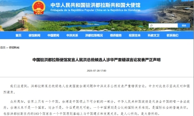 香港中通社11月24日電 中國駐加拿大使館24日消息,駐加拿大使館發言人回應涉台問題,敦促有關國家切實恪守一個中國原則,尊重中國主權和領土完整。