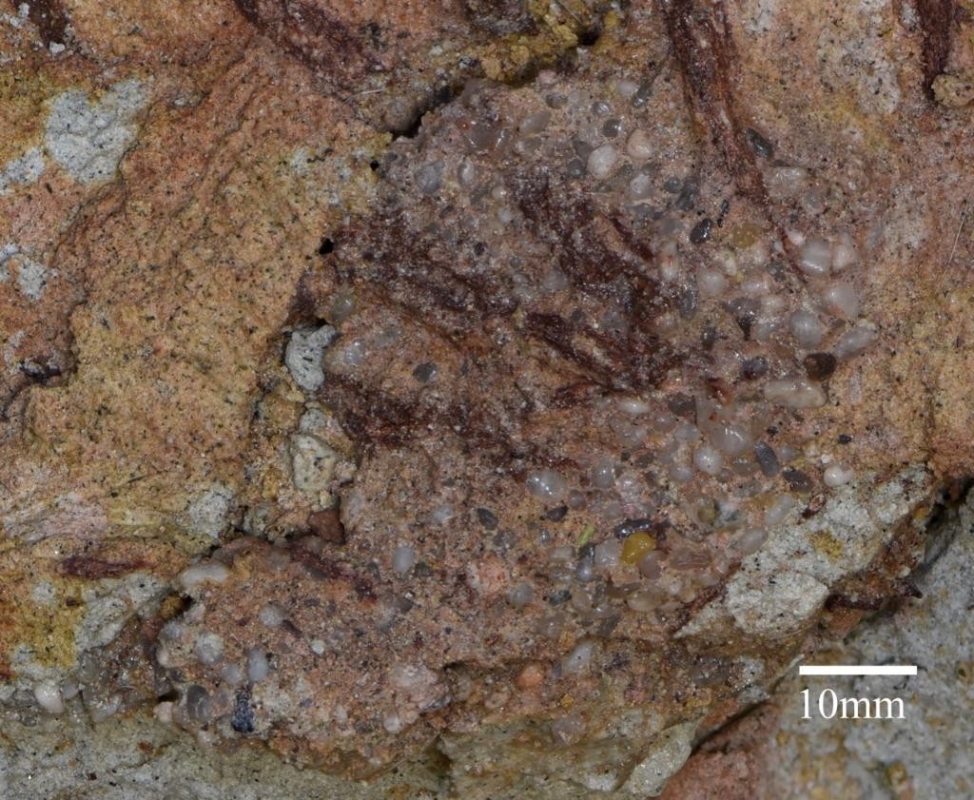 化石中保存的胃石。(受訪者供圖) 中國科學院古脊椎動物與古人類研究所博士郝明澤說,竊蛋龍類是一類與鳥類關係比較近的獸腳類恐龍,具有十分獨特的身體構造和築巢行為。研究竊蛋龍類恐龍對理解非鳥獸腳類恐龍向鳥類演化的過程,以及中生代恐龍形態和生態的多樣性具有重要意義。 毛兒圖地區的化石發掘工作始於1959年,此前已研究并命名了鯊齒龍類的毛兒圖鯊魚齒龍,禽龍類的戈壁原巴克龍和甲龍類的屈眼戈壁龍。百年鴛鴦龍是這一化石點命名的第四種恐龍。這一發現說明毛兒圖地區在早白堊世晚期不僅生存有大型恐龍,同時也有竊蛋龍類這樣佔據獨特生態位的小型似鳥恐龍,為了解當時的恐龍生態多樣性提供了新的視角。 【編輯:馬華】