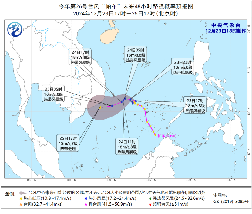 香港中通社12月23日電 據中國氣象局消息,12月23日14時,今年第26號颱風“帕布”(熱帶風暴級),在南海南部海面上生成。