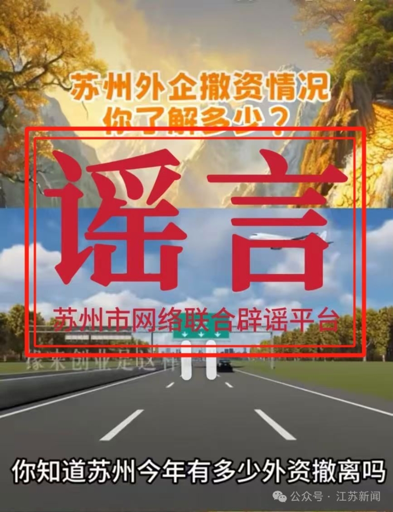 香港中通社12月23日電 據蘇州市網絡聯合闢謠平台,近日,有網民在互聯網傳播“蘇州大量外資企業撤離”,該消息為不實信息。