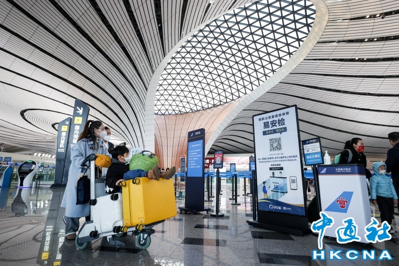 資料圖為北京大興國際機場。 香港中通社圖片 其中,內地居民出入境86.9萬人次,較去年同期增長11.1%;港澳台居民74.9萬人次,較去年同期增長12.8%;外國人18.5萬人次,較去年同期增長33.6%。 據介紹,其間,按照中國國家移民管理局統一部署,全國邊檢機關加強提示引導,科學組織勤務,備足執勤警力,開足查驗通道,確保中國公民出入境通關排隊不超過30分鐘。 此外,今年中國元旦假期為1月1日週三,雖然沒有連續放假,但不少消費者依然選擇旅遊跨年。1月1日,中國阿里巴巴集團旗下旅遊服務網絡平台“飛豬”發布《2025元旦假期出遊快報》。其中顯示,近一周中國內高星酒店預訂量同比去年同期增長超40%。今年元旦,黑龍江、吉林、新疆、河北等地因“冰雪遊”而尤為火爆;而前往海南、廣西、廣東等南方地區的“避寒遊”則在入冬後迎來了一波預訂高潮。 飛豬數據還顯示,截至2025年1月1日凌晨,出境遊商品預訂量同比增長近70%,國際租車預訂量同比增長超70%,其中美國、澳大利亞、新西蘭、埃及、沙特阿拉伯等目的地租車熱度排名靠前。(完) 【編輯:丘志彬】