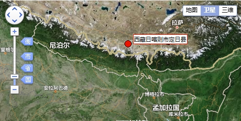 西藏日喀則市定日縣衛星圖。國家地震科學數據中心截圖 震中5公里範圍內平均海拔約4259米。本次地震周邊5公里內的村莊有塘仁村、雪珠村、嘎熱果吉村、美朵村、查吉、拉倉、康窮,20公里內的鄉鎮有措果鄉、曲洛鄉。 震中距定結縣34公里、距定日縣36公里、距拉孜縣67公里、距薩迦縣71公里、距昂仁縣92公里,距日喀則市164公里,距拉薩市379公里。 定日縣屬於喜馬拉雅高山地貌,平均海拔5000米以上。境內主要有喜馬拉雅山和拉軌崗日山。世界最高峰——珠穆朗瑪峰即在該縣境內。 根據中國地震台網速報目錄,震中周邊200公里內近5年來發生3級以上地震共29次,最大地震是本次地震。(完) 【編輯:淩玉輝】
