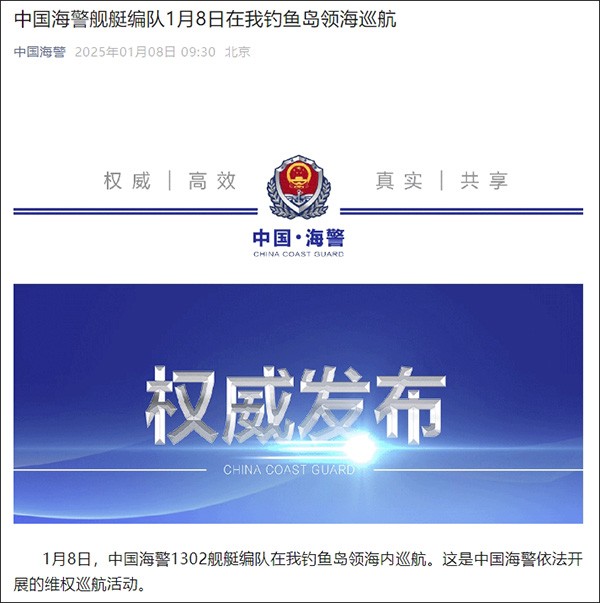 微信公眾號“中國海警”截圖 2024年12月5日,中國海警局新聞發言人劉德軍表示,當天,日本“瑞寶丸”號漁船非法進入中國釣魚島領海,中國海警艦艇依法對其採取必要管控措施並警告驅離。 2024年10月17日,中國海警局新聞發言人劉德軍表示,10月15日至16日,日“鶴丸”號漁船非法進入中國釣魚島領海,中國海警艦艇依法對其採取必要管控措施并警告驅離。 釣魚島位於中國東海大陸架的東部邊緣,地質結構上是附屬於中國台灣的大陸性島嶼。早在明朝初期,釣魚諸島就已明確為中國領土。1972年美國將琉球主權移交日本時,一併將釣魚台列嶼的行政管轄權也交給日本。針對日美再三挑釁中國釣魚島主權行徑,自1970年代開始,世界各地華人組織的民間團體多次展開宣示主權的“保釣運動”。2012年8月15日,香港愛國人士曾衝過日本攔截,成功登上釣魚島,插上五星紅旗,宣布中華人民共和國對釣魚島擁有無可爭議的主權。(完) 【編輯:丘志彬】