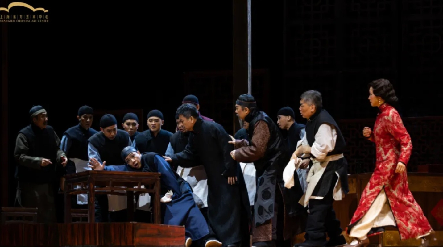《天下第一樓》演後星光大合照。(圖源:深圳濱海藝術中心、蘇州灣大劇院、北京天橋藝術中心) 本輪巡演,香港話劇團匯集香港一眾戲劇界明星,特邀金馬獎“影帝”謝君豪主演,以強大陣容演繹經典佳作,演出所到之處人氣極高、口碑極高,歡呼聲掌聲經久不息!吳氏策劃真誠感謝深圳濱海藝術中心、佛山大劇院、蘇州灣大劇院、北京天橋藝術中心和上海東方藝術中心的大力主辦和精誠合作,感謝觀眾們的熱情支持,感謝團隊同仁的辛苦付出,衷心期待下一次戲劇巔峰之旅! 直擊演出現場 三十年經典的完美新演繹 《天下第一樓》被譽為當代現實主義劇作精品,曾獲文化部戲劇最高榮譽“文華獎”和中國戲劇文學“曹禺獎”等多項大獎,1988年由北京人民藝術劇院首次搬上舞台;2022年香港話劇團首度搬演該劇,隨即在第七屆華語戲劇盛典上一舉捧得“最佳男主角”“最佳男配角”“最佳導演”三項“最佳”。 本輪香港話劇團《天下第一樓》全國巡演依舊由司徒慧焯執導,由金馬影帝謝君豪任特邀主演,聯同余翰廷、申偉強、黃慧慈、周志輝、劉守正、歐陽駿、陳永泉、高翰文、潘泰銘等演出。