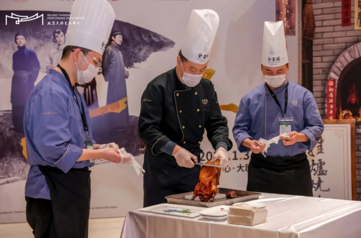 以烤鴨為題材的《天下第一樓》,搭配前廳真實的“烤鴨攤”!(圖源:深圳濱海藝術中心、蘇州灣大劇院、北京天橋藝術中心)