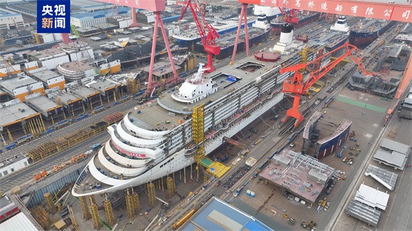 1月15日,中國第二艘國產大型郵輪完成全船主船體貫通(圖源:央視新聞) 據中國船舶集團消息,在中國船舶上海外高橋造船的船塢中,長341米,寬37.2米的第二艘國產大型郵輪全船主船體實現貫通。從入塢總裝搭載到全船貫通,僅用時9個月,較首艘國產大型郵輪縮短了2個多月。 據介紹,第二艘國產大型郵輪於去年10月被命名為“愛達·花城號”,計劃於2027年正式在廣州南沙郵輪母港開啟國際航線。而第一艘國產大型郵輪名為“愛達·魔都號”,以上海為母港。 據上海海關發布的數據顯示,“愛達·魔都號”自去年1月開啟商業首航一年來,已完成運營84航次,運輸出入境旅客60萬人次。今年1月9日,愛達郵輪中國海岸巡游暨青島航線部署發布儀式在青島舉行,“愛達·魔都號”將於4月以青島為首站開啟中國海岸巡游,這將是“愛達·魔都號”首次於上海以外的中國港口城市亮相。(完) 【編輯:丘志彬】