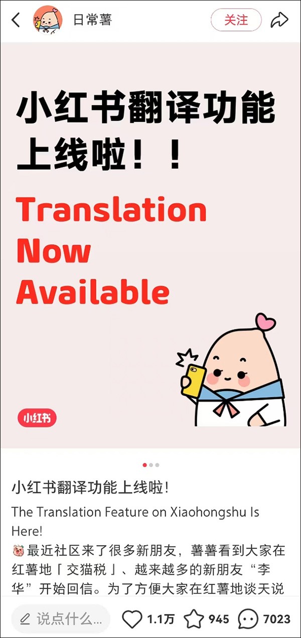 中國社媒小紅書上線“一鍵翻譯”功能分享到: