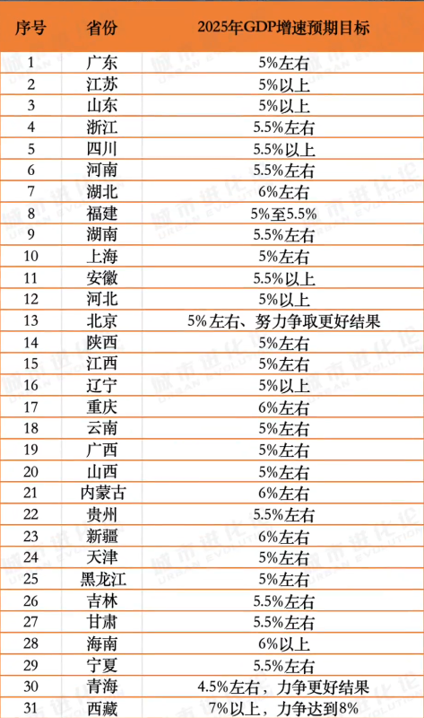中國31省份2025年GDP目標出爐分享到: