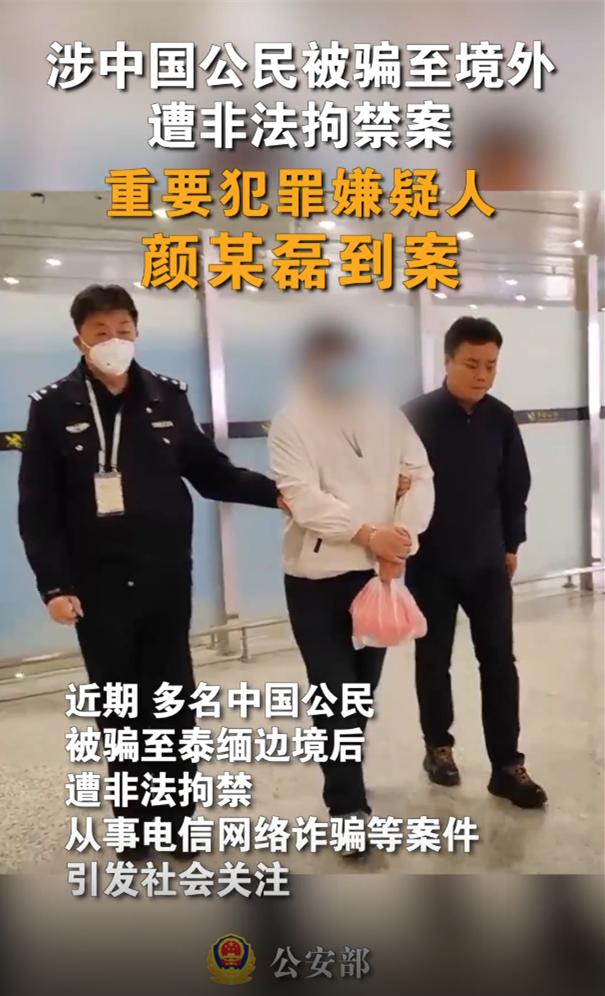視頻截圖 據北京官媒26日報道,經中國公安部工作組和中國駐泰使館合力,在泰執法部門協助下,相關案件的重要犯罪嫌疑人顔十六到案並於1月25日晚回國。目前,中國公安機關正全力開展案件偵辦工作。 公安部有關負責人表示,公安機關將以更大的決心和力度,發起嚴打猛烈攻勢,深化國際執法合作,加強與相關國家協調配合,全力緝捕違法犯罪嫌疑人,協調解救被困人員,壓縮跨境犯罪生存發展空間,保護中國公民人身財產安全。同時提醒廣大民眾提高警惕,加強安全防範,切勿輕信境外高薪招聘、務工信息,避免落入違法犯罪陷阱。 據其他演員指認,顔十六是江蘇連雲港人;他在2015年左右到浙江橫店影視城,先後在不同劇組從事群演、武行、動作指導和導演等多個工種。 王星1月3日抵達曼谷機場後,顔十六稱他安排了專車,接王星到開機儀式現場附近的酒店。不料車輛一路向北,王星最終在泰緬邊境的湄索縣斷聯。 事發後,王星的女友向其他演員打聽到,顔十六此前就一直以試戲為由拐騙演員到泰國。就在王星失蹤前一天,他還在招募其他演員試戲。除了演員,顔十六還招募攝影、燈光、美術和場務等幕後工作人員赴泰國。 近期,多名中國公民被騙至泰緬邊境後遭非法拘禁、從事電信網絡詐騙等案件引發社會關注。公安部對此高度重視,迅速部署相關地方公安機關全力開展人員解救和案件偵查調查,同時派出工作組赴境外開展工作。(完) 【編輯:丘志彬】