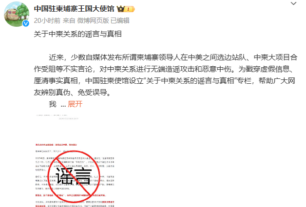 中國駐柬使館設中柬關係闢謠專欄分享到: