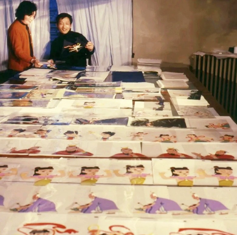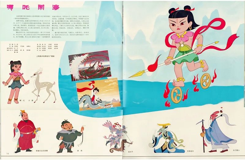 上海美術電影製片廠創作人員在校對《哪吒鬧海》。圖自上海電影博物館 1978年5月,《哪吒鬧海》正式進入製作階段。創作團隊根據中國明代古籍《封神演義》中記載的哪吒故事,圍繞鬧海情節進行加工整理。時至今日,哪吒儼然是分量僅次於孫悟空的中國神話代言人了,這首先要歸功於動畫電影《哪吒鬧海》對“哪吒”的重塑。 《封神演義》中人物眾多,線索龐雜,內容較長。要將書中有關哪吒的故事改編成一部簡潔明快、老少鹹宜且僅60分鐘的影片,劇本最終采取了“提純淨化”的手法,在“鬧海”的命題範圍內將哪吒和龍王的矛盾作為主線,減弱哪吒父子間的矛盾,在此基礎上加以組織劇情。重點塑造“人有神力、神有人氣。有情有理,以情感人”的人物形象。影片著力體現人物的典型性,同時又大量表現著人物細膩的內心活動和感情變化。在這點上,《哪吒鬧海》無疑讓中國動畫電影完成了一次巨大的突破。