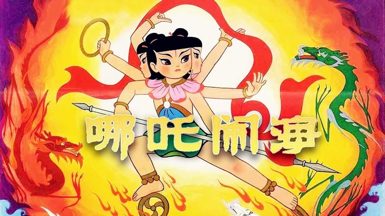 圖為1979年版上海美術電影製片廠的動畫電影《哪吒鬧海》海報。圖自網絡 自2月14日在北美上映後,《哪吒2》接連與《美國隊長4》和《帕丁頓熊3:秘魯大冒險》等大片“過招”,暫已拿下周榜第五的佳績。