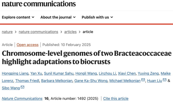 Nature Communications官網截圖 本研究依託華大自主研發的DNBSEQ測序平台,首次完成片球藻屬下兩種綠藻B.bullatus和B.minor染色體級別的基因組組裝。 相較於其它綠藻,研究人員發現它們的基因組中包含了大量與環境適應相關基因的擴增和新功能化現象。比如,這兩種綠藻都表現出與氮代謝、脂肪酸延伸,以及角質、蠟生物合成相關的基因家族的擴張,這些特徵對在乾燥、溫度波動和營養缺乏的環境中生存至關重要。此外,研究人員發現這兩種綠藻通過基因水平轉移,從細菌和真菌等物種中獲得了200多個基因,這些基因可能有助於抵抗紫外線、調節滲透和生產抗氧化劑,使其能在營養貧乏的土壤中生存。 研究人員通過轉錄組、蛋白組和代謝組的聯合分析,系統解析了結皮綠藻在多種不利條件下的油脂代謝變化。分析顯示,結皮綠藻能够通過靈活的極性油脂與中性油脂的相互轉化來改變脂質代謝,並通過平衡膜脂來保持結構完整性、平衡儲存脂質來保持能量儲備。 據介紹,在氣候變化和荒漠化加劇的背景下,這項研究為理解結皮綠藻的環境適應機制提供了新見解,也為利用這些綠藻進行生態修復和潛在生物技術應用提供了重要的基因資源。(完) 【編輯:彭玉婷】