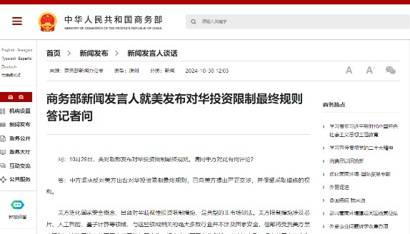 林劍說,美國加嚴對中國赴美投資安全審查,嚴重打擊中國企業對美投資信心,破壞的是美國自己的營商環境;加碼限制美國對華投資,是人為干預美國企業自主決策、扭曲兩國投資往來。 “美國將中國企業和中國市場拒之門外,最終損害的是美國自身經濟利益和國際信譽。”林劍表示,中方敦促美方遵守國際投資貿易規則,尊重市場經濟規律,停止將經貿問題政治化、武器化,停止損害中國正當發展權利。中方將採取必要手段堅決維護自身合法權益。 針對美方對中國造船業等相關產業的限制措施,林劍指出,美方出於國內政治需要,濫用301調查手段,嚴重違背世貿規則,是對多邊貿易體制的進一步破壞。中方對此強烈不滿、堅決反對。 “我們敦促美方尊重事實和多邊規則,立即停止錯誤做法。中方將採取必要手段捍衛自身合法權益。”林劍說。(完) 【編輯:彭玉婷】