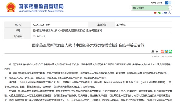 香港新聞網3月4日電 中國國務院新聞辦公室4日發布《中國的芬太尼類物質管控》白皮書(以下簡稱“白皮書”)。